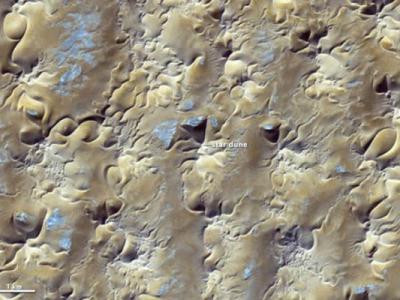 卫星照片展示阿尔及利亚沙漠中的星形沙丘