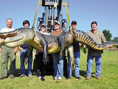 今年鳄鱼狩猎季密西西比州捕获的一条长约4.13米、重达330公斤的巨鳄,打破了该州...