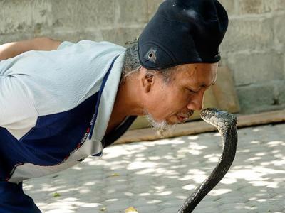 与8条眼镜王蛇同住 印尼“老蛇王”遭2次