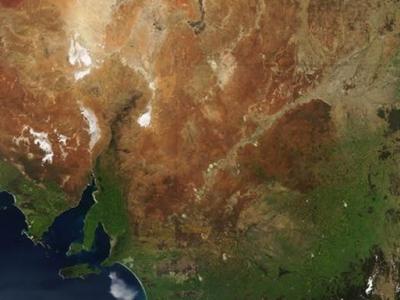 卫星照片显示澳大利亚大陆的南部开始变绿 美国宇航局的“水绿”号(Aqua)卫星于...