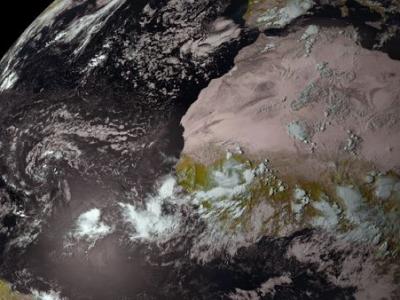 卫星照片显示非洲西海岸酝酿中的系列风暴正准备飞向大西洋 Meteosat-9气象卫星拍...