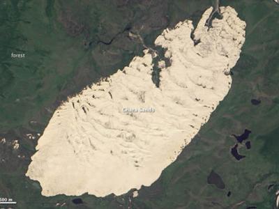 2013年7月11日, Landsat 8拍下了这幅自然色照片 沙地呈现为棕褐色。周围的森...