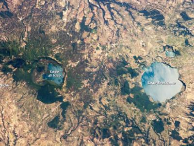这幅照片是国际空间站上的宇航员于2013年9月3日拍摄的,突出地显示了两个这样的湖...