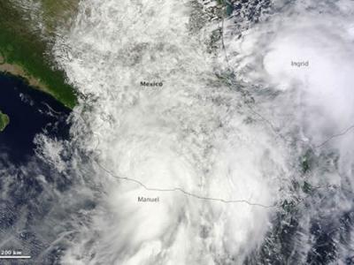 9月15日上午,NASA的Terra卫星拍摄了这幅照片,同时显示了这两个风暴 据新浪科技...