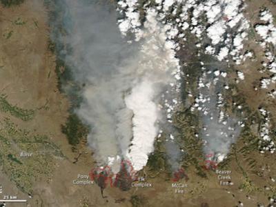 飞行测绘地图显示美国大型野火散发出来的烟雾中的甲醛浓度 据新浪科技:美国国家...