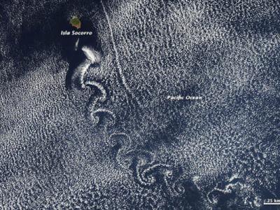 卫星照片展示了太平洋火山岛索科罗岛上空