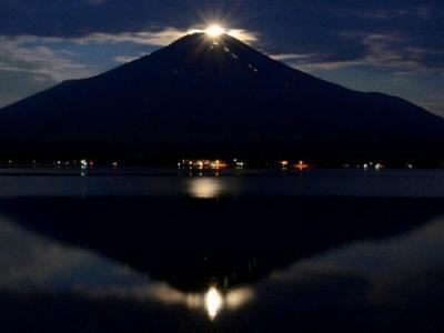 日本富士山在满月时的“珍珠富士”美景