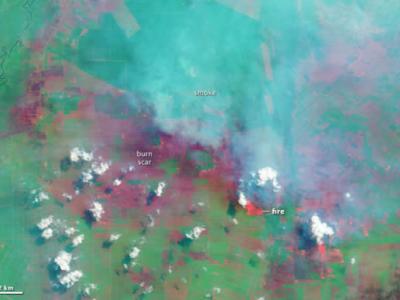 Landsat 8卫星2013年6月25日拍下了上面的第一幅照片,显示了剧烈的火灾现场。在这...