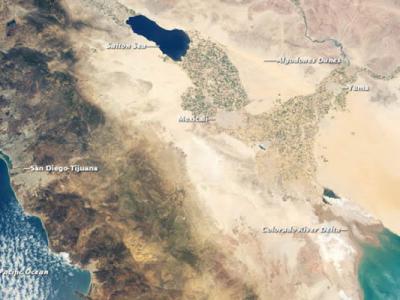 太空照片显示北美洲索尔顿海槽的复杂地貌