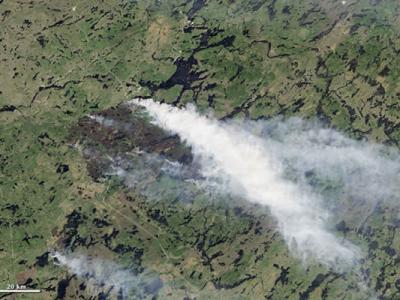 卫星照片显示加拿大魁北克省西部的野火火灾景象 卫星照片显示加拿大魁北克省西...