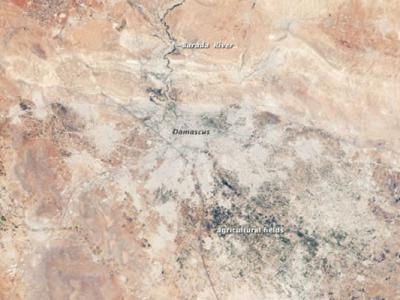 卫星照片显示阿拉伯叙利亚共和国首都大马