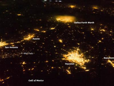 卫星照片展示美国得克萨斯州的灯光夜景 美国国家航空航天局地球观测站(NASA's E...