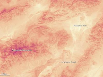 第一幅图是NASA的Landsat 8卫星上的热红外传感器获取的,显示了死谷2013年6月30的...