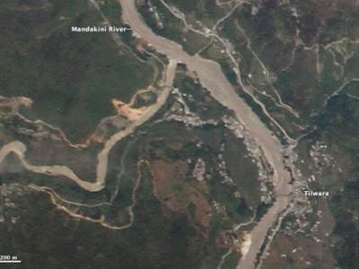 卫星照片展示印度6月中旬特大洪灾过后的景象 卫星照片展示印度6月中旬特大洪灾...