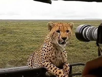 摄影师用相机镜头吓跑好奇猎豹 社交网络上受到大量网民批评视...