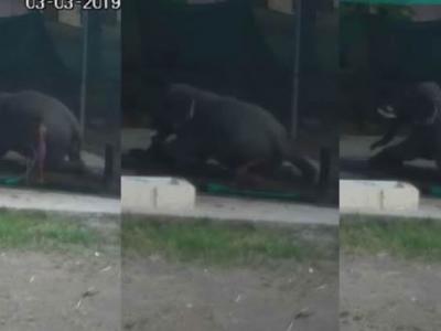 印度喀拉拉邦戈德亚姆动物园员工帮大象洗澡不慎滑倒 被大象一...