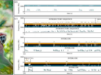 拉尔·吉本歌曲的组织。(a) 雄性拉尔长臂猿在怀卡坎野生动物保护区(泰国)唱歌。...
