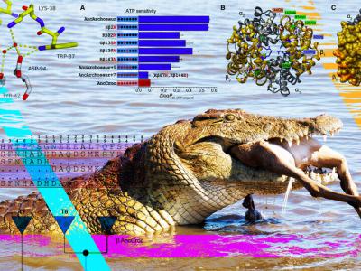 尼罗河鳄鱼吞下一只黑斑羚,这是它在水面下等待的奖励。通过复活古代鳄鱼祖先的血红...