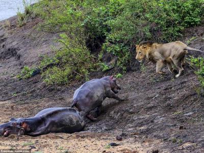 南非克鲁格国家公园小河马为保护深陷泥淖的妈妈直接冲向雄狮咆哮 结局令人悲伤(蜘...