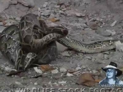蟒蛇成功猎捕老鼠大快朵颐 却遭更大的蟒