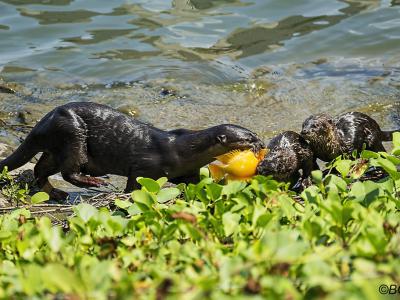 新加坡河边正在吃午餐的野生水獭家族(非搬迁的家族)。图片来源:Brian Evans(CC...
