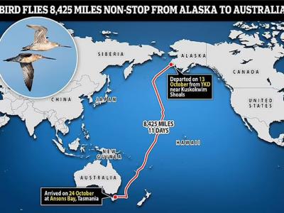 一只5个月大的斑尾塍鹬从阿拉斯加不间断飞了13558公里到澳大利亚 创新的世界纪录(...