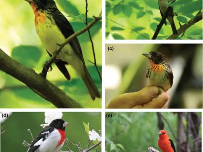 鸟类学首次记录到的同类杂交:雌性玫胸白斑翅雀与雄性猩红丽唐纳雀孕育雌性后代(蜘...