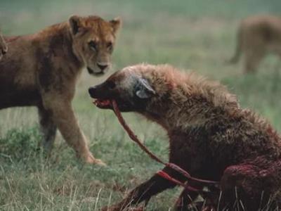 非洲坦桑尼亚塞伦盖蒂国家公园鬣狗遭狮子围攻竟自我掏肛想吓退敌人(蜘蛛网eeook.c...