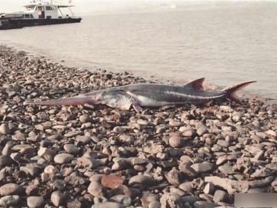 1993年葛洲坝下发现的白鲟,这可能是留存于世最清晰的白鲟照片(危起伟 供图)(蜘...