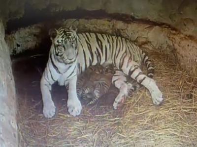 印度卡纳塔克邦动物园患有白化病的雌老虎Thara诞下3只幼崽 毛色正常(蜘蛛网eeook....