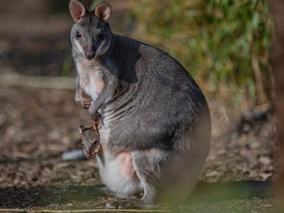 英国英格兰切斯特动物园濒危暗色沙袋鼠产下的幼崽亮相 腹袋探头看世界(蜘蛛网eeoo...