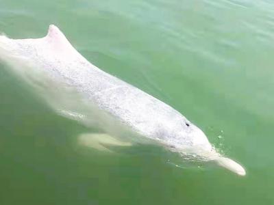 福建省宁德市霞浦县盐田乡南塘村前海面发现两只国家一级保护动物中华白海豚(蜘蛛网...