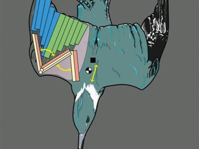 带鱼狗(一种鸟名,研究中的样本之一)俯冲姿势下,对其翅膀进行惯量特征估计。图片...