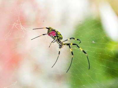 色彩鲜艳的大型入侵横带人面蜘蛛正在美国