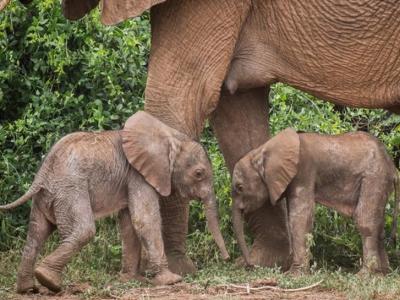 肯尼亚桑布鲁国家保护区雌象成功产下一对