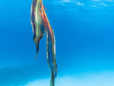 海洋生物学家在澳大利亚海岸Lady Elliot岛附近浮潜时拍摄到罕见毯子章鱼(蜘蛛网ee...