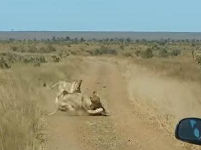南非克鲁格国家公园草丛内埋伏的两只母狮展开攻击在3秒内捕捉到疣猪(蜘蛛网eeook....