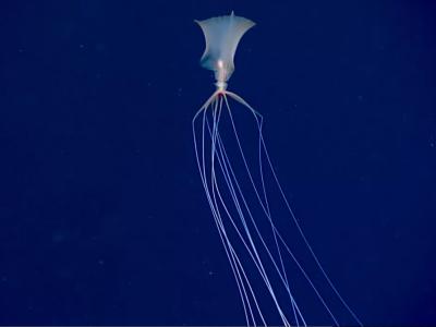 NOAA科学家拍摄到深海中难以捉摸的大鳍鱿鱼