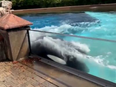 加拿大尼加拉瀑布城Marineland圈养的虎鲸Kiska出现自残倾向不断用头撞墙(蜘蛛网ee...