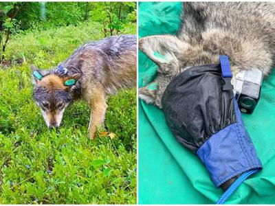 美国明尼苏达大学附属野生动物组织在野狼颈部挂摄录机 第一视角呈现野外生活日常(...