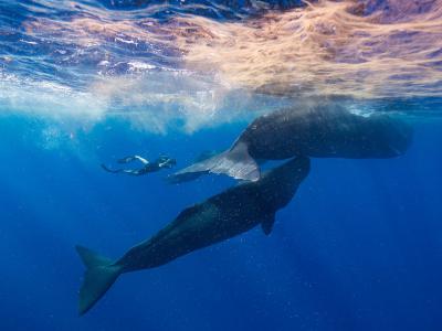 布莱恩.史盖瑞在加勒比海岛国多米尼克的外海拍摄一群抹香鲸。他进行一项关于鲸鱼文...