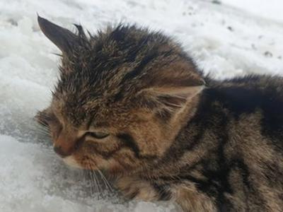 英国苏格兰马里男子在雪地救出冻僵小猫