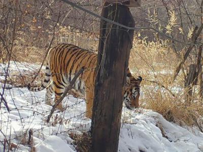 俄罗斯哈巴罗夫斯克边疆区自然资源部专家在中俄边界救起一只极其虚弱的雌性阿穆尔虎...