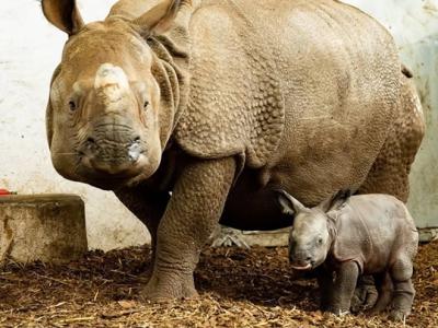 波兰弗罗茨瓦夫动物园濒危物种印度犀成功
