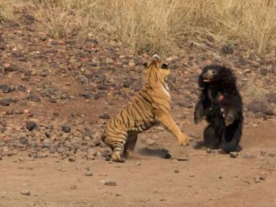 印度塔多巴老虎保护区孟加拉虎与懒熊激战(蜘蛛网eeook.com报道)据ETtoday(实习记...