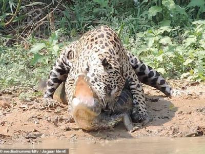 巴西潘塔纳尔湿地美洲豹咬住凯门鳄拖进沼泽地(蜘蛛网eeook.com报道)据CTWANT:一...