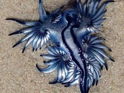南非妇人在开普敦鱼角海滩散步时发现“蓝龙”大西洋海神海蛞蝓Glaucus atlanticus(...