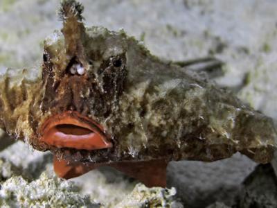 潜水员在加勒比群岛拍到不会游泳的鱼 French Key Cut频道播出这种稀有的短吻蝙蝠鱼...