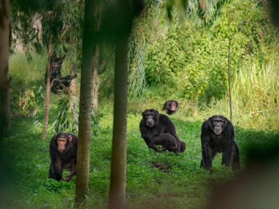 在乌干达的一群黑猩猩。有些黑猩猩的优势雄性采用铁腕统治,有些则以较温和的方式治...