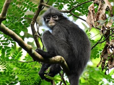 居住在新加坡的印尼叶猴。照片来源:维基百科/Andie Ang(CC BY-SA 4.0)(蜘蛛网...